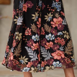 This sophisticated. sleeveless dress features multicolor floral embroidery. delicate scalloped lace at the neck and sleeves. a separate slip and is embellished with ladder lace down the front. Keyhole back. Polyester/cotton. Hand wash. Imported. Black floral. Sizes XS (0-2). S (4-6). M (8-10). L (12-14). XL (16-18). XXL (2022). Approx 52L.