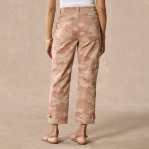 Versatile. lightweight camo pants with straight leg. adjustable leg opening. flattering Hollywood waistband. patch pockets and zip/button fly. Cotton/spandex. Machine wash. Imported. Exclusive. Sizes 0?C14. 26.5 inseam.