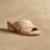 Slip into foot-cradling comfort with the brilliant. crisscrossing design of these soft. wide strap. leather sandals by B?rn?. Extra comfortable with padded insoles. back zippers and flexible soles. Imported. Whole sizes 6-11. 1/2 heel.