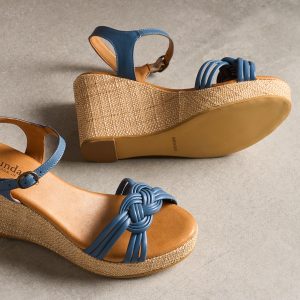 Knotted leather straps are the focal point of these shoes. which also feature a woven-wrapped wedge and cushioned leather insole. Leather. Italy. Exclusive. Whole sizes 36-42. 36 (US 5.5). 37 (US 6). 38 (US 7). 39 (US 8). 40 (US 8.5). 41 (US 9.5). 42 (US 10).