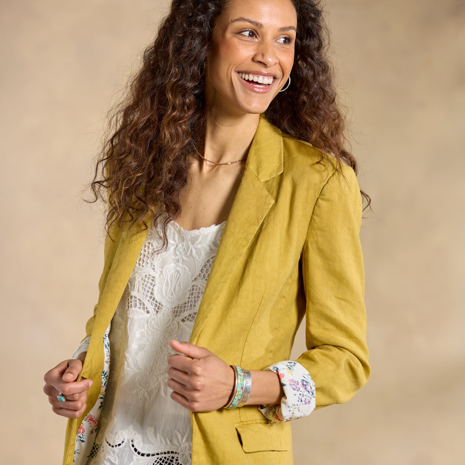 No need to borrow from the boys; with its thoroughly feminine take on this classic menswear silhouette. our Quinn Blazer is sure to become a permanent wardrobe fixture. Cute contrast lining and welt pockets. Linen/lyocell/spandex. Machine wash. Imported. Exclusive. Sizes XS (0-2). S (4-6). M (8-10). L (12-14). XL (16-18). XXL (20-22). Approx. 30l.