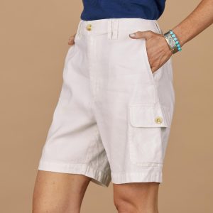 Sweet. safari-inspired shorts are sure to delight with six convenient pockets including two side cargo pockets. belt loops and faux horn buttons. Linen/lyocell/spandex. Machine wash. Imported. Exclusive. Sizes 2?C16. 7 inseam.