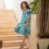 An ode to summer. our easy. flowing. floral print dress with geometric embroidery detail at neckline and placket. With one tier. flutter sleeves. notch neckline. side seam pockets and a removable ring loop rope belt. Lined. Cotton/viscose. Machine wash. Imported. Exclusive. Sizes XXS (00). XS (0?C2). S (4?C6). M (8?C10). L (12?C14). XL (16?C18). Approx. 45l.