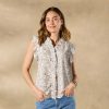 Feminine textures like pineapple smocking and lace accents combine with bold printed details on our feminine Woodrose Top. Button placket with loop closure. elastic cuffs. Cotton. Machine wash. Imported. Exclusive. Sizes XS (0–2). S (4–6). M (8–10). L (12–14). XL (16–18). XXL (20–22). Approx. 24.5l.